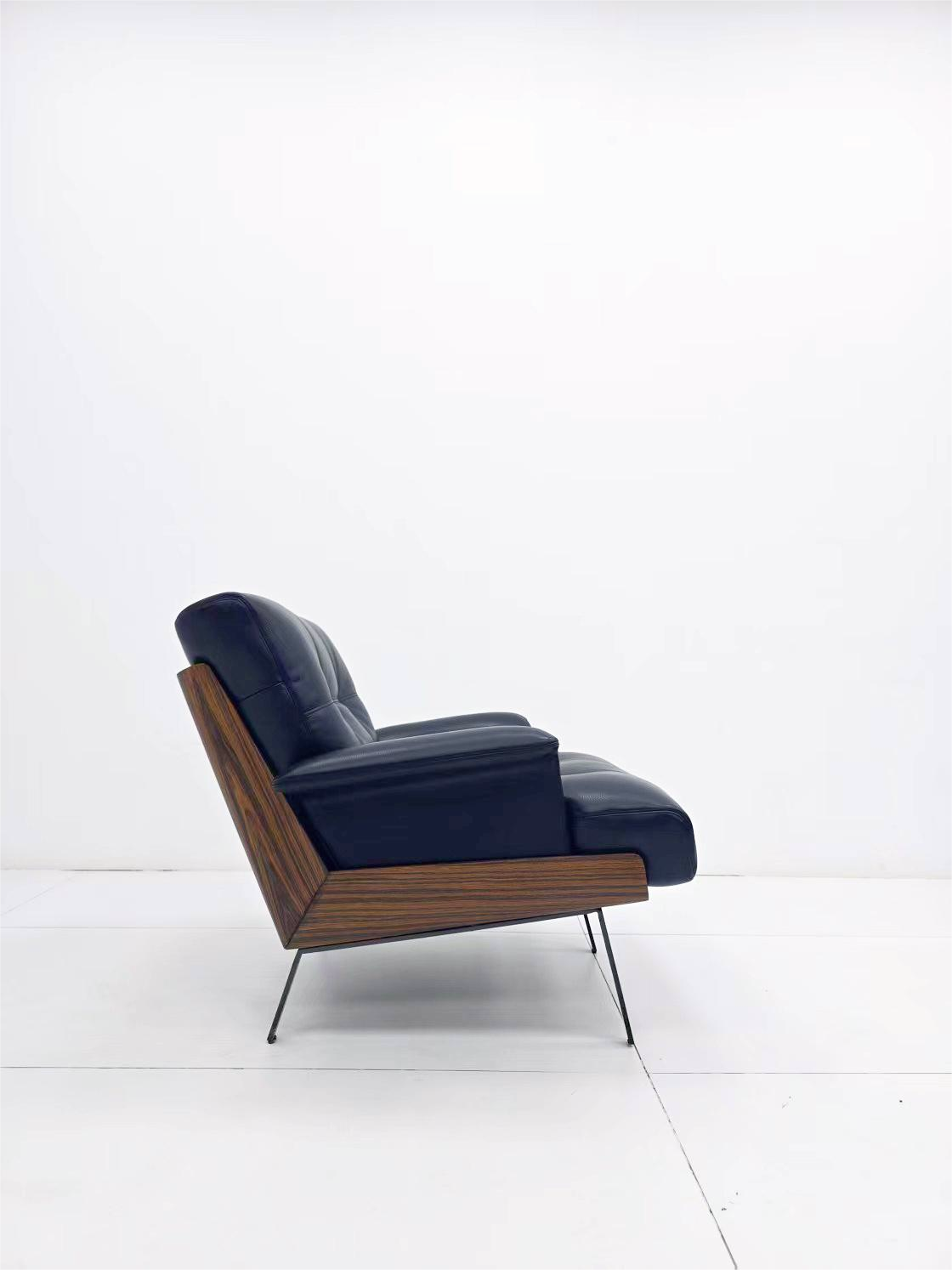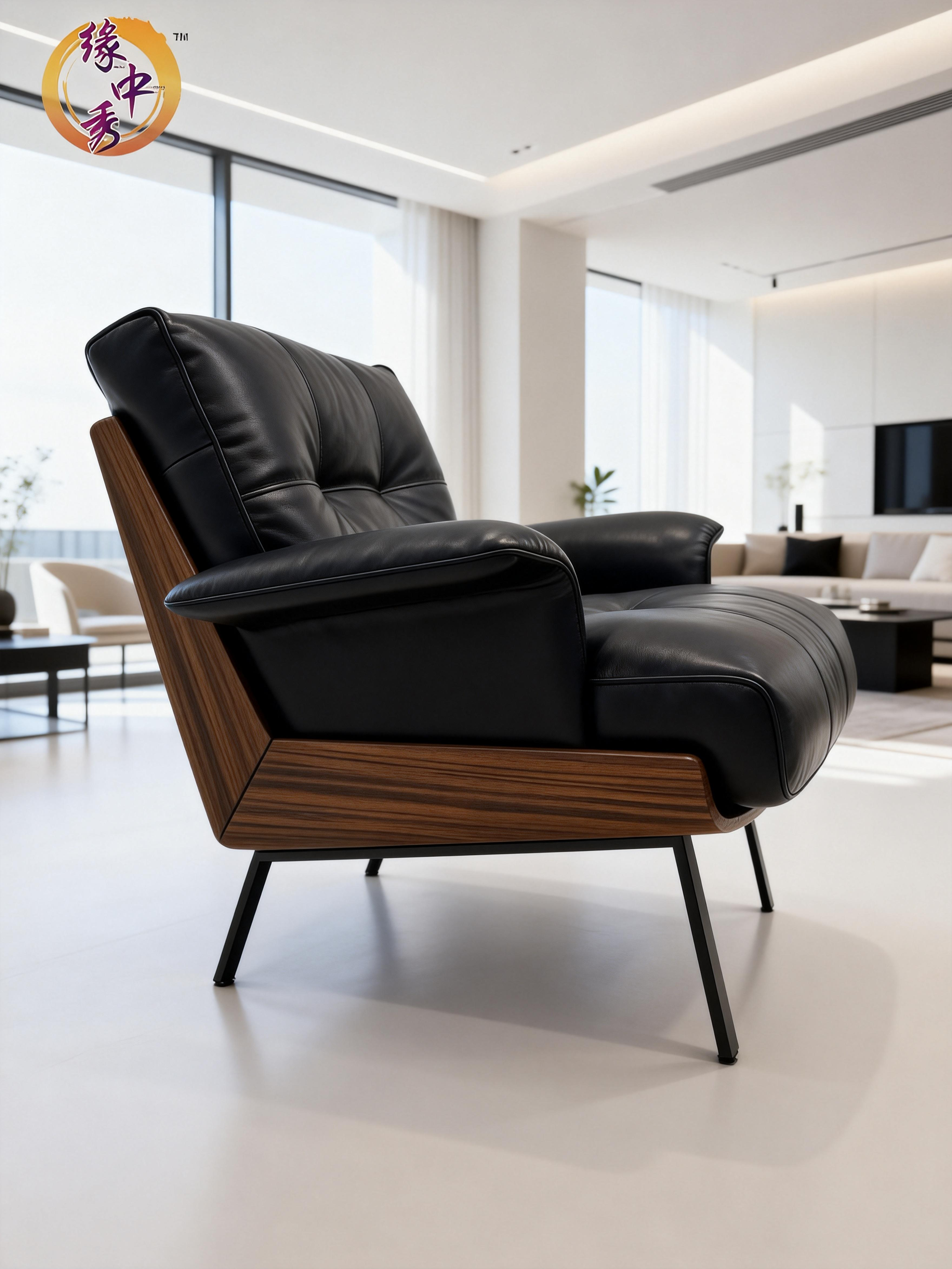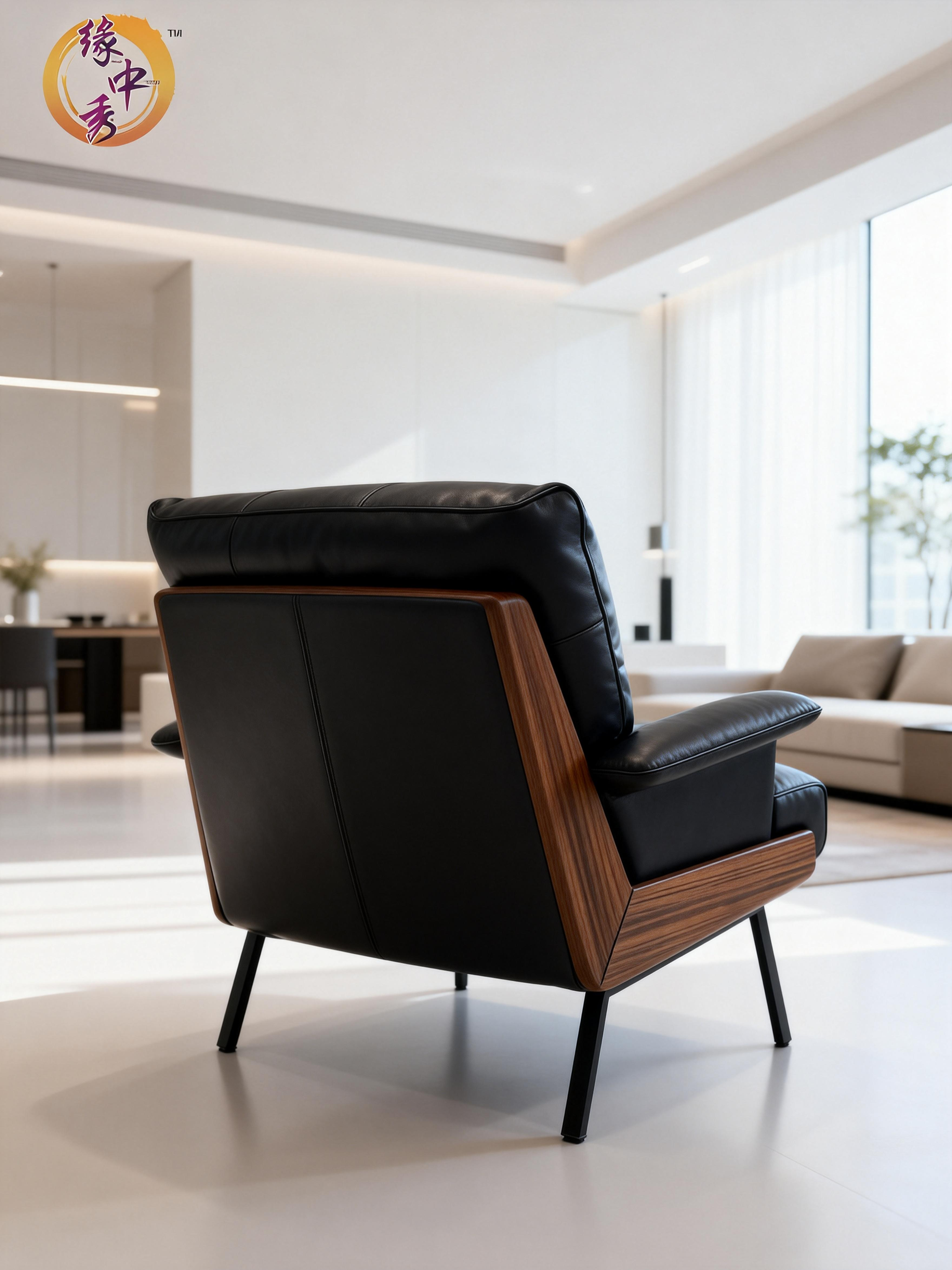 - Premium materials, built to last: Upholstered in top-grain black leather and filled with high-density foam, the seat offers a supple, refined touch with long-lasting resilience that resists sagging. The backrest and armrest frame are crafted from solid wood in a walnut finish, showcasing natural grain patterns with a sturdy, high load-bearing structure.