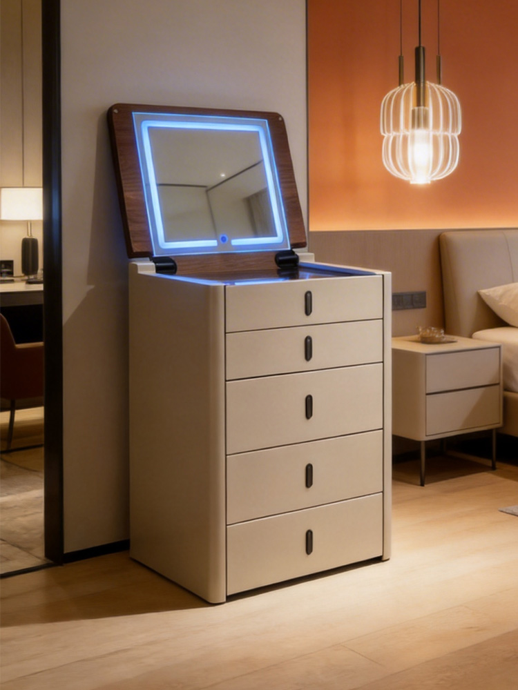 The LumiGlow Multifunction Vanity Table combines elegant design with practical storage. Featuring a soft neutral tone and clean lines, it fits seamlessly into modern bedrooms or dressing areas.