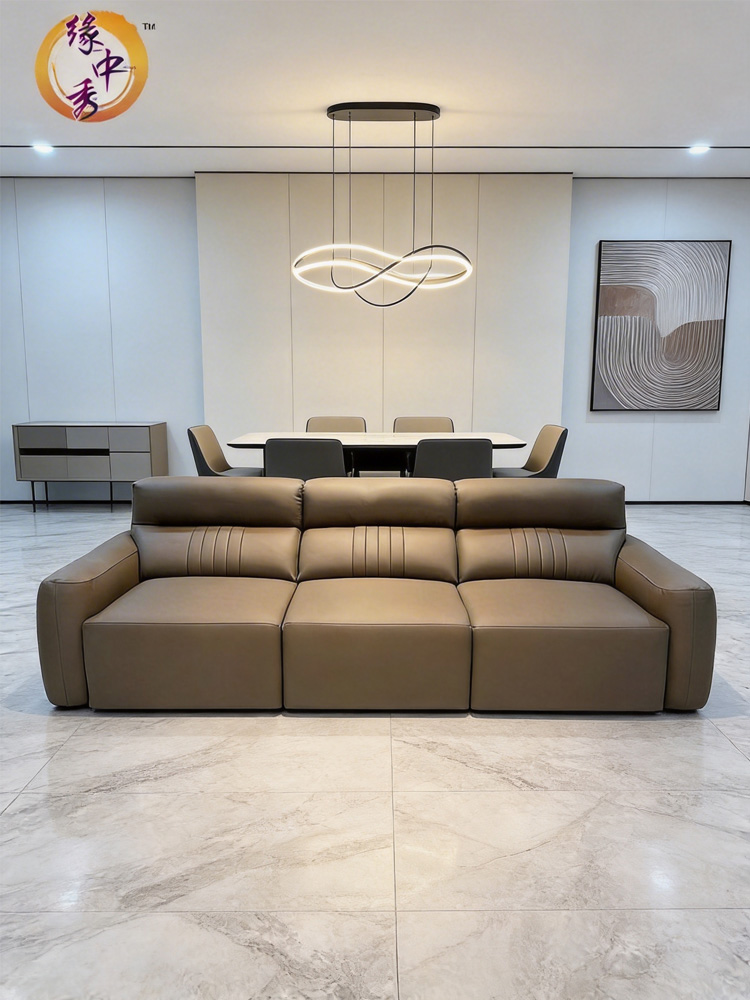 Length: 2760 mm Cover: Eco leather Frame: Full solid wood internal frame Cushion: High-density rebound foam Function: Power reclining mechanism