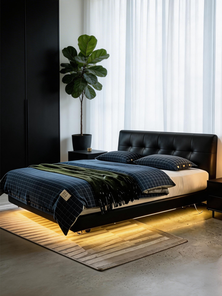 A balance of design and functionality, enhanced by subtle lighting. Elevate your bedroom with a modern floating aesthetic.