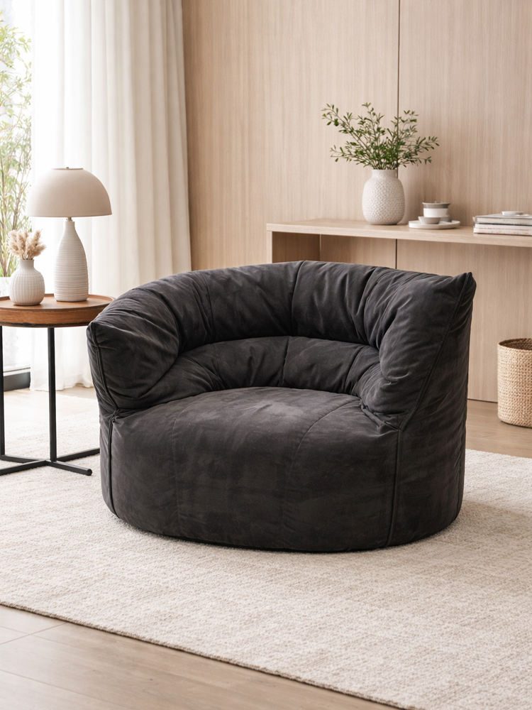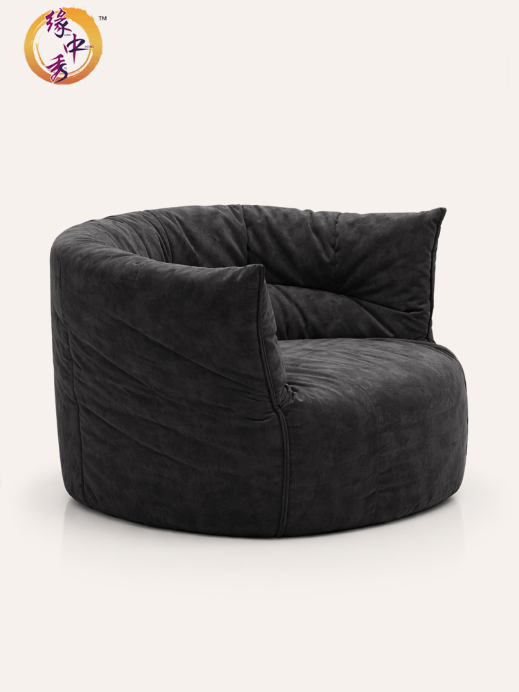 The Agano Cozy Lounge Chair features a rounded, enveloping design that creates a comfortable and inviting seating experience.