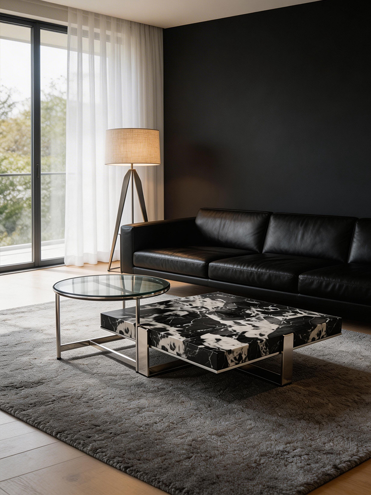 The Bulgari Eclipse Coffee Table Set showcases a refined balance of materials and geometric form, creating a stylish focal point in any living space.