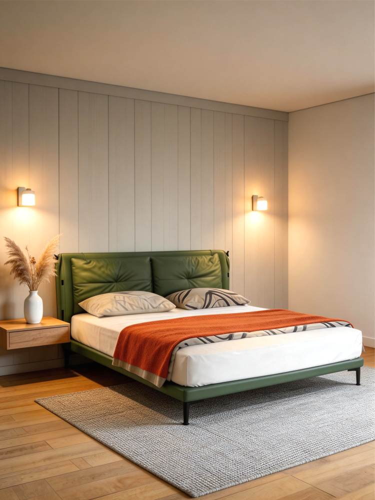 The Leather Upholstered Bed blends soft cushioning with a structured frame, creating a refined and comfortable sleeping environment.